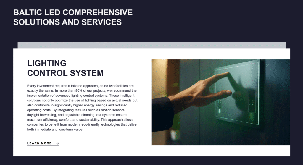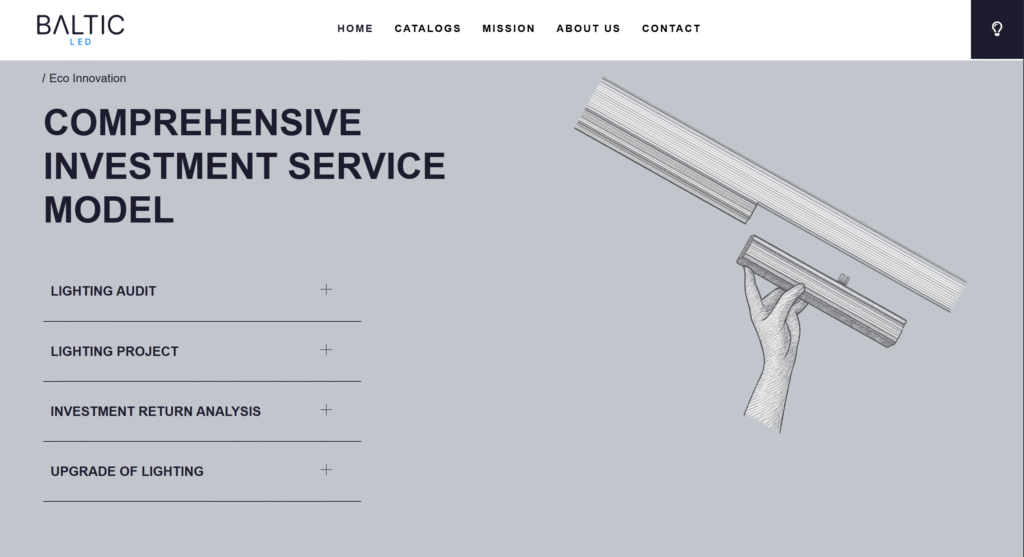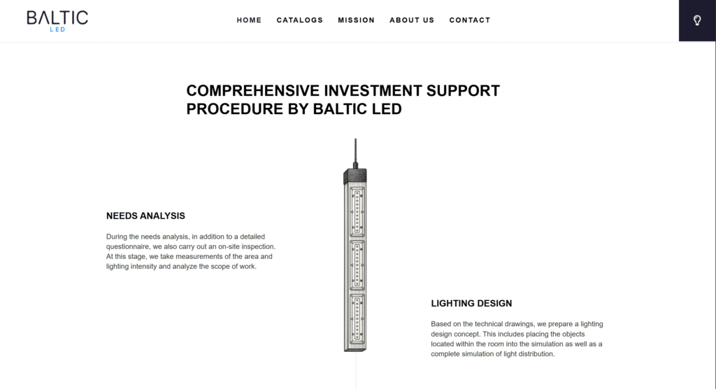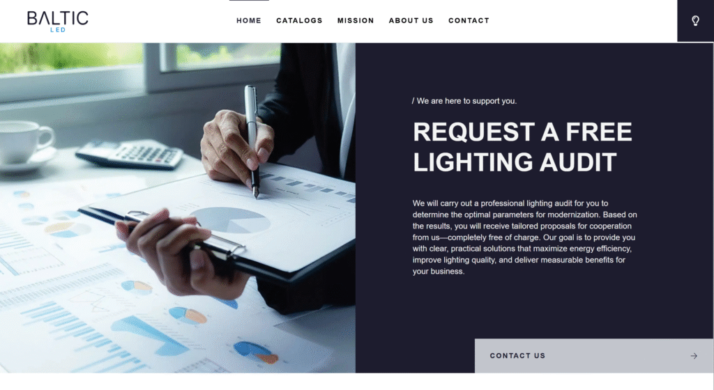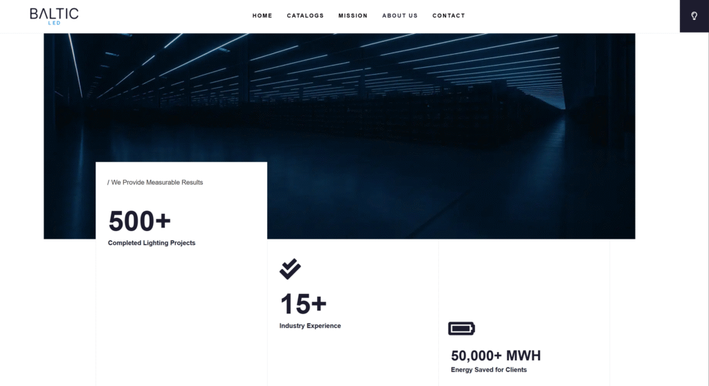 Dla Baltic LED, lidera w dostarczaniu energooszczędnych i nowoczesnych rozwiązań oświetleniowych dla biznesu, stworzyliśmy nowoczesną, responsywną i w pełni funkcjonalną stronę internetową, która pokazuje ich doświadczenie, innowacyjność i profesjonalizm.