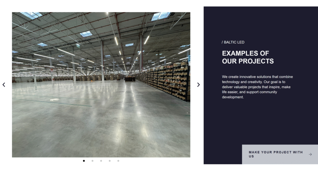 Efektem naszej pracy jest platforma online, która nie tylko wzmacnia wizerunek Baltic LED, ale także działa jako skuteczne narzędzie sprzedażowe – przyciąga potencjalnych klientów, buduje zaufanie do marki i prezentuje portfolio firmy w sposób nowoczesny, profesjonalny i przyjazny użytkownikowi.